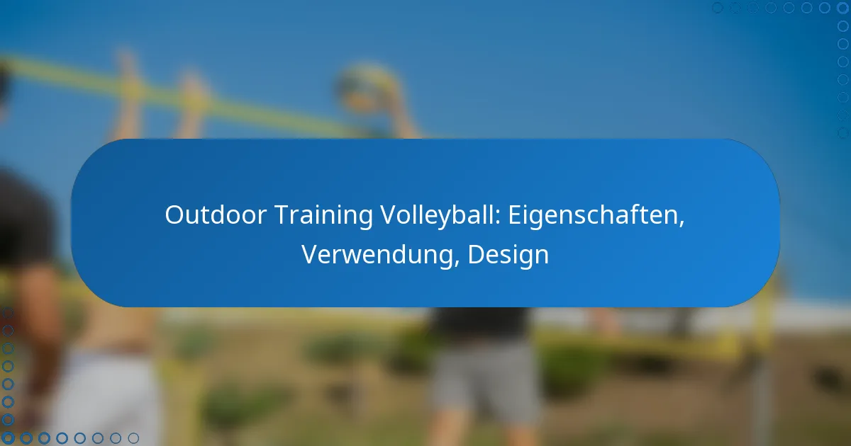 Outdoor-Trainingsvolleyballs sind mit spezifischen Merkmalen ausgestattet, die die Leistung und Haltbarkeit unter verschiedenen Wetterbedingungen verbessern. Wichtige Aspekte sind die Materialzusammensetzung, Größen- und Gewichtsspezifikationen, Grip-Eigenschaften, Leistungstechnologien und Wetterbeständigkeit.
